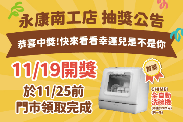 - 2510永康新店滿額抽獎【得獎公告】